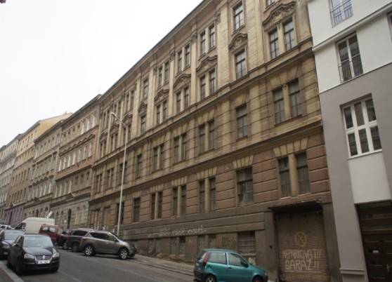 Prázdné činžovní domy s vydaným pravomocným stavebním povolením na rekonstrukci bytových domů s parkováním.